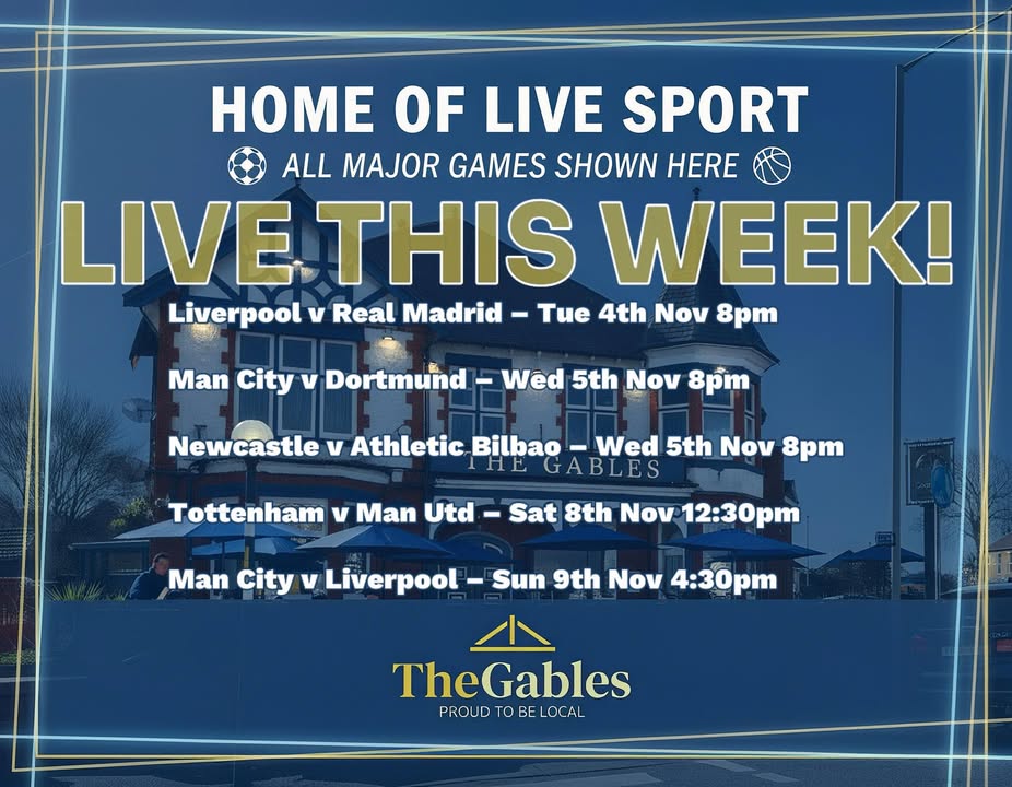 ⚽️ Live Football Fixtures This Week! ⚽️ Join us for an exciting lineup: 📅 Liverpool v Real Madrid – Tue 4th Nov, 8pm 📅 Man City v Dortmund – Wed 5th Nov, 8pm 📅 Tottenham v Man Utd – Sat 8th th Nov, 12:30pm 📅 Man City v Liverpool – Sun 9th Nov, 4:30pm Enjoy the games on 4 internal screens and a big screen outside with full sound for the match day experience. 🍔 Food menu available 7 days a week! Plus, we have multiple Sky boxes for split game viewing, never miss a moment of the action! Have you spotted a sporting event that you’d like to catch? Shout us up! If we have it, we will show it! 📅 Come down and enjoy the thrill of live sports with us! #FootballFiesta #LiveSports