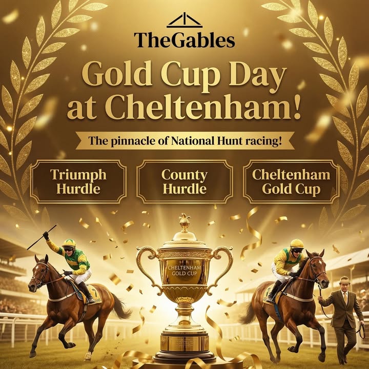 🏇 DAY 4 - GOLD CUP DAY 🏇 The pinnacle of National Hunt racing! Gold Cup Day is here - the moment we’ve all been waiting for! 📋 BETTING SLIPS AVAILABLE AT THE BAR! The final day of the festival demands to be celebrated in style. Watch live on our screens, grab your betting slips at the bar, and the bookies is just 2 minutes away - perfect for placing that final bet! Why not join us for a spectacular finale and chance your luck on the odd bet or two? 🍻 👇 Are you saving the best for last with us on Friday? #CheltenhamFestival #GoldCupDay #Cheltenham2026 #HorseRacing #TheGablesPub #CheltenhamGoldCup